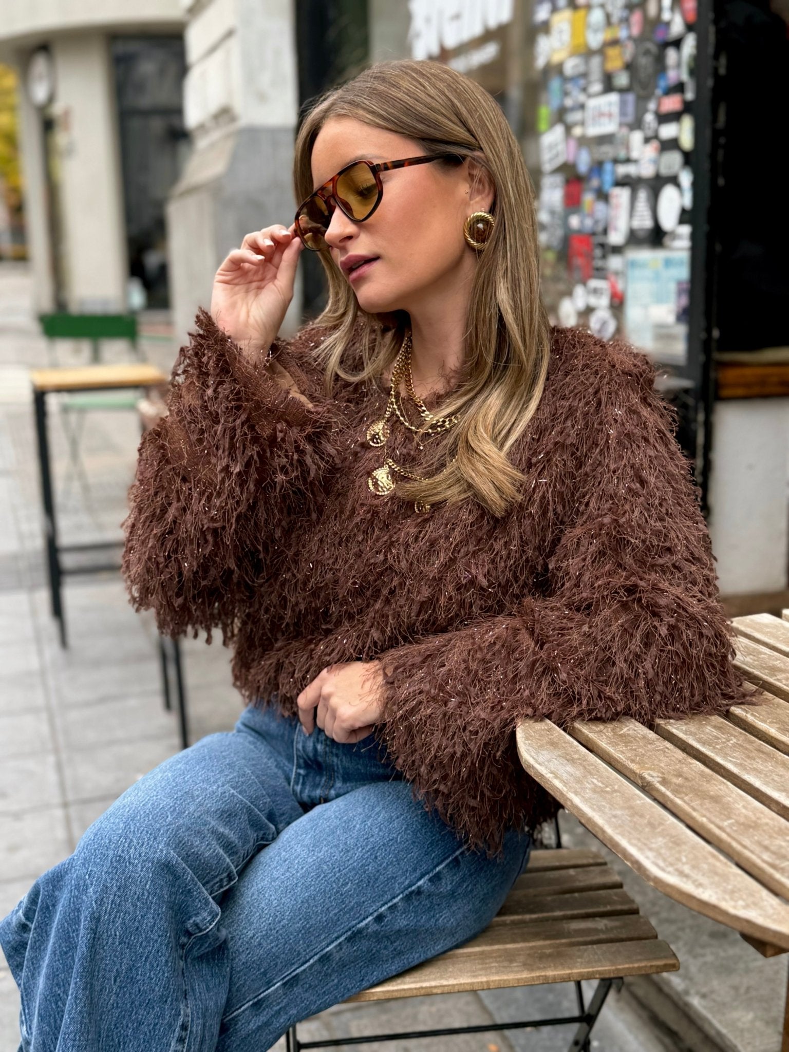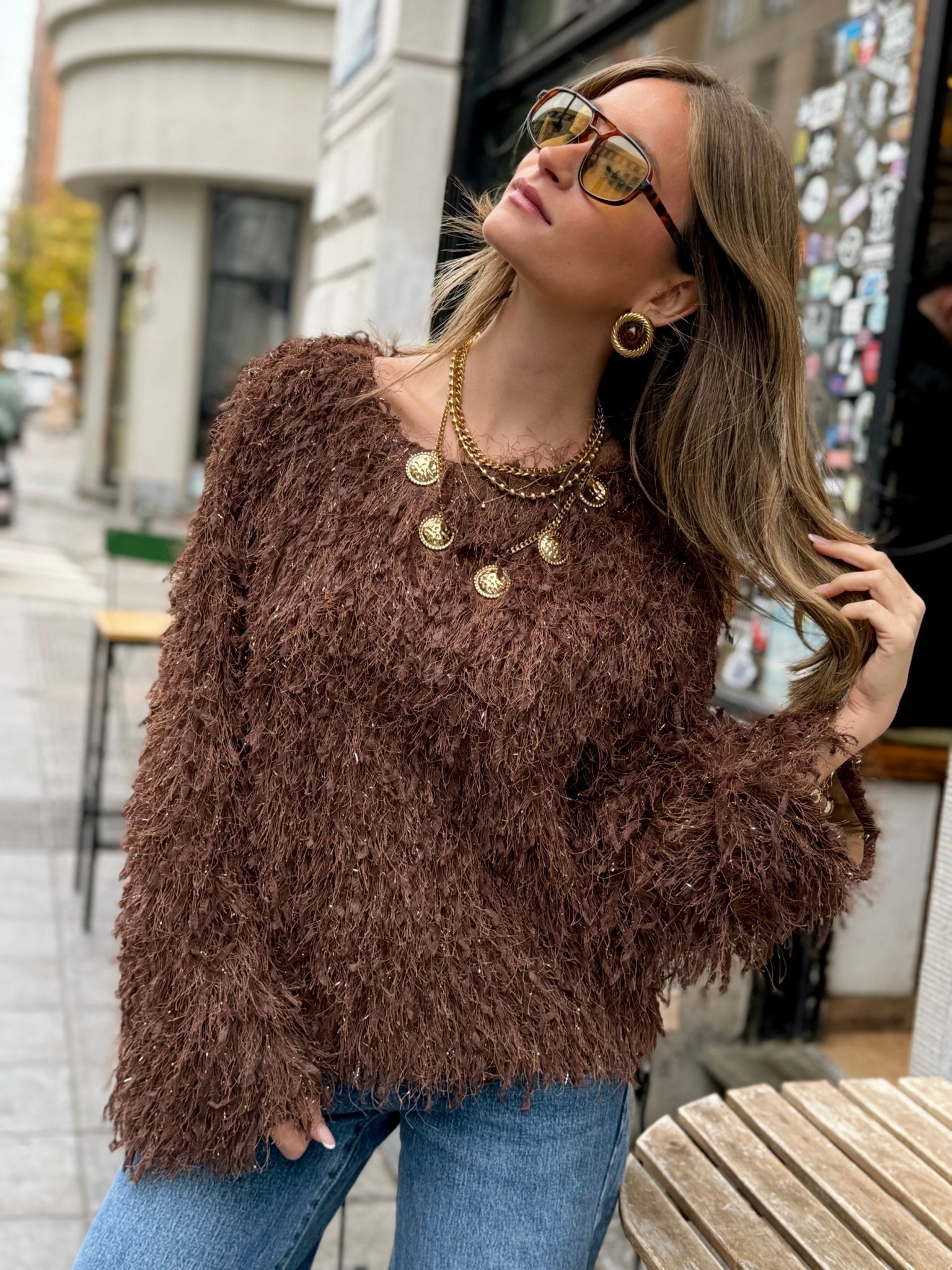 Une pièce originale et raffinée qui allie confort et brillance subtile. Idéale pour les fêtes ou pour rehausser une tenue du quotidien avec une touche chic et lumineuse.