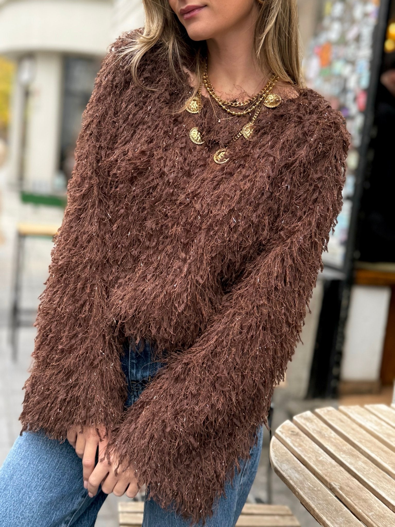 La blouse Najoua – Effet plume scintillant