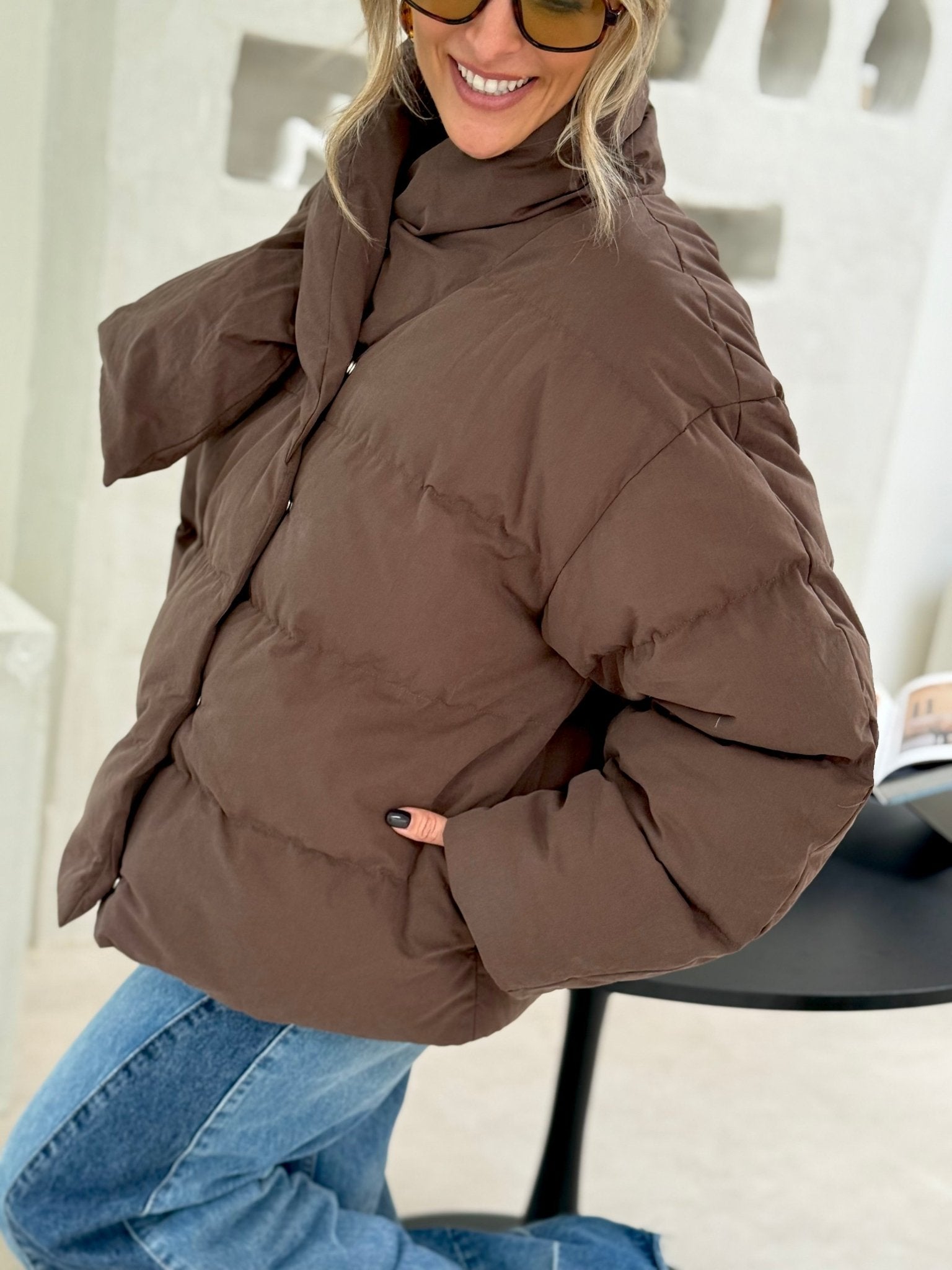 Une veste à la fois chaude et stylée. Ajoute une touche mode très actuelle grâce à son col enveloppant et sa coupe oversize.