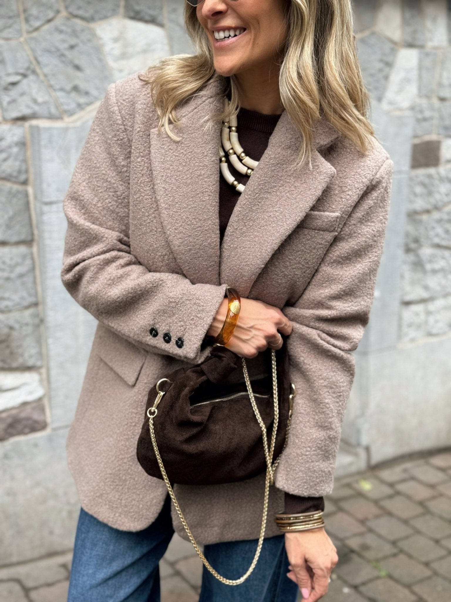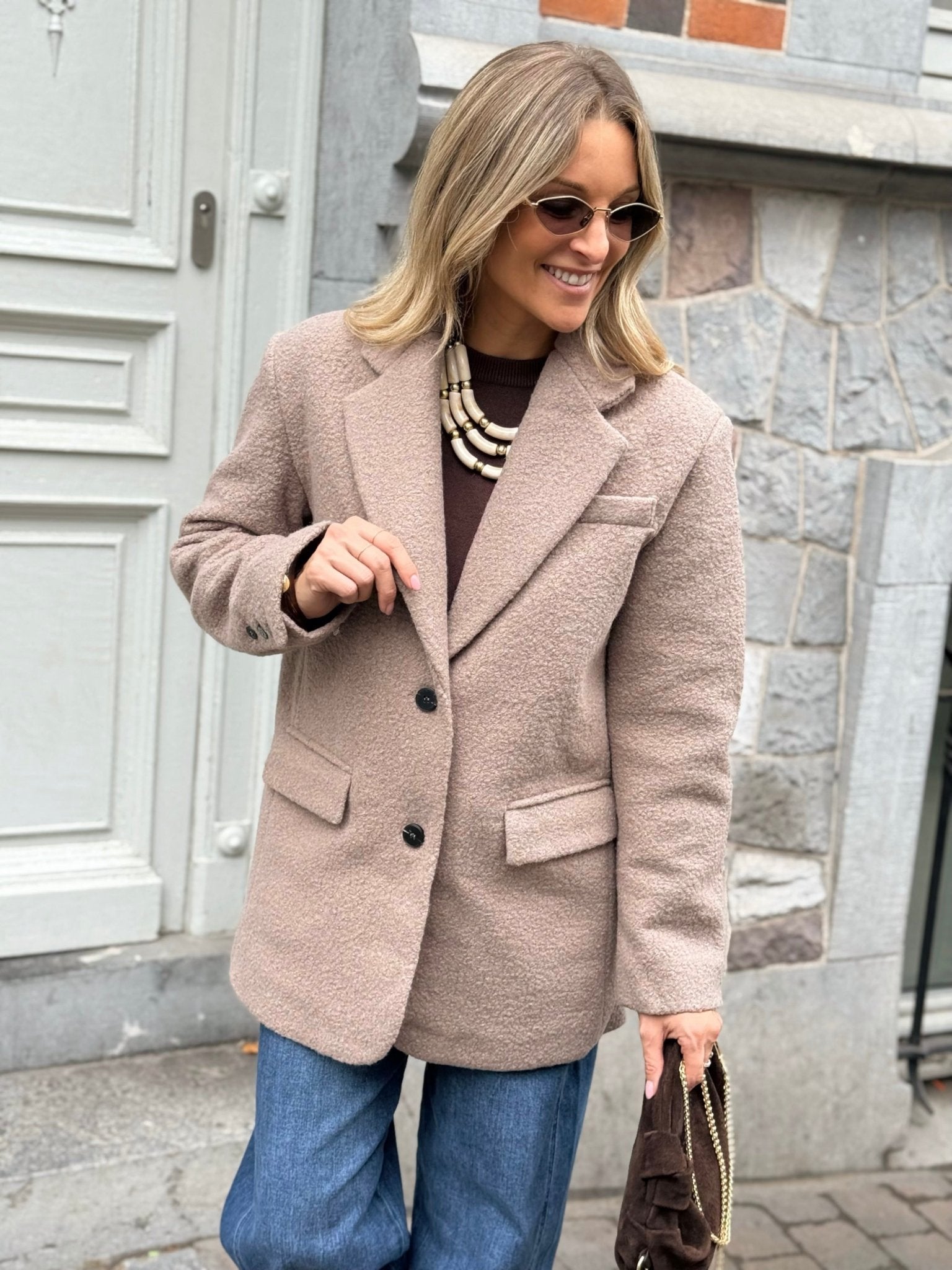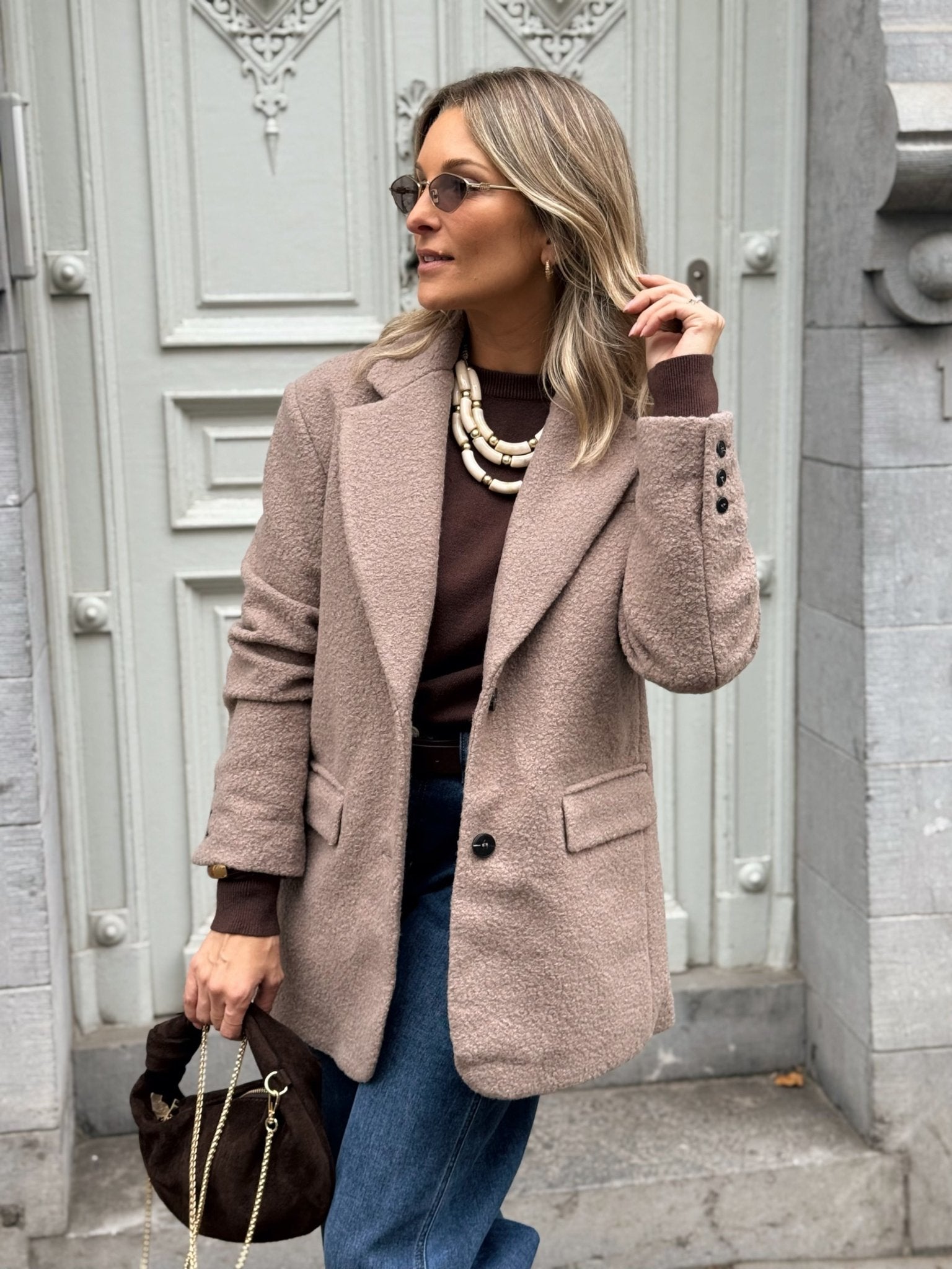 Une veste chic et facile à porter, idéale pour celles qui recherchent un manteau à la fois moderne, confortable et indémodable.