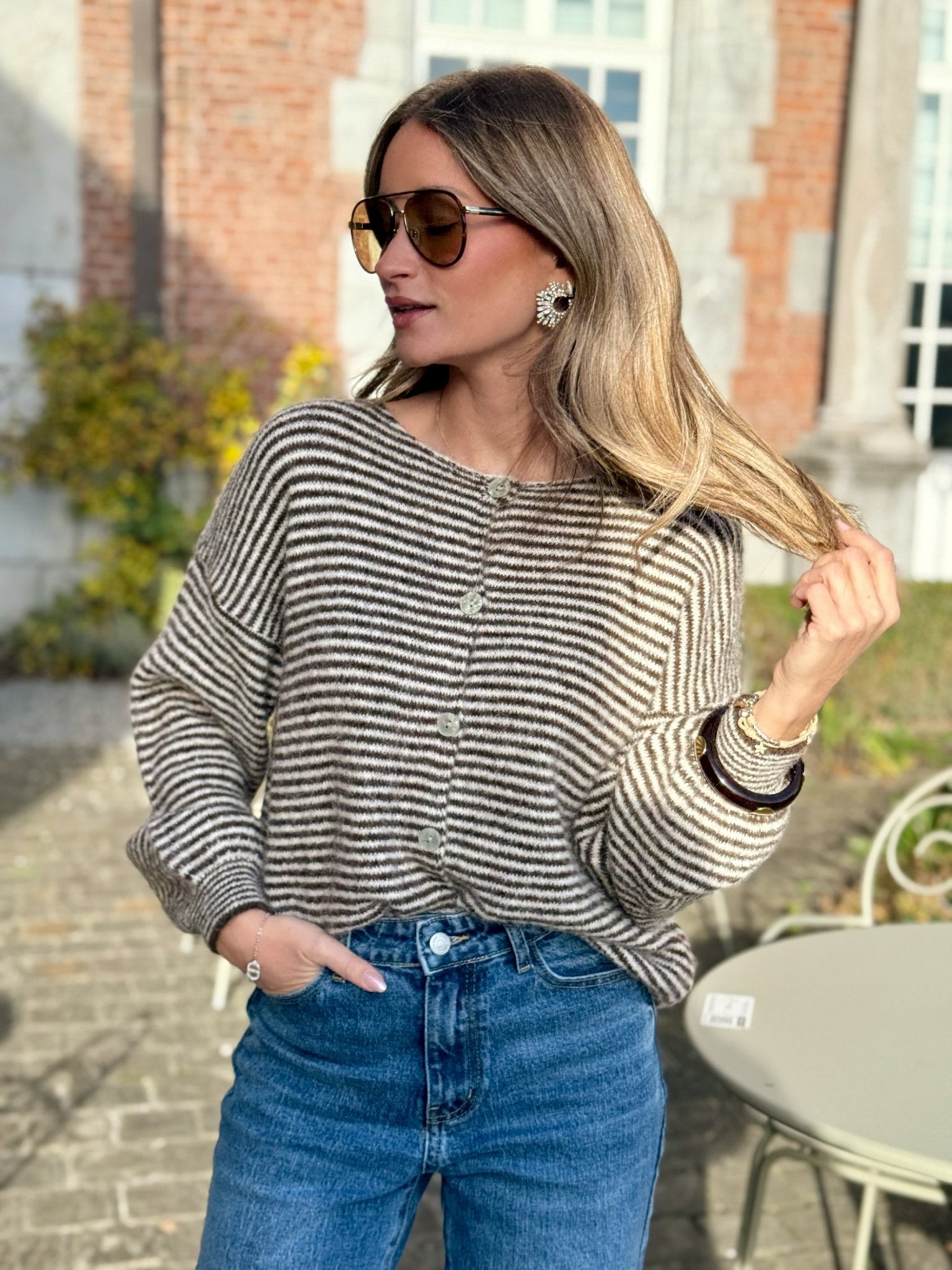 Un pull doux et tendance, parfait pour affronter la saison avec style. Son motif rayé apporte une touche moderne et chic, tandis que la coupe légèrement ample assure un confort optimal. L’écharpe assortie, fournie avec le modèle, permet de créer un look complet, élégant et harmonieux en un clin d'œil.